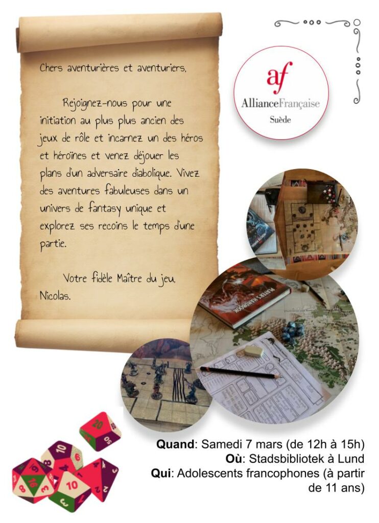 Quand: Samedi 11 avril 13:30-14:30 Où: Botulfshörnan à Lund (Stadshallen, Stortorget 9) Qui: Familles francophones ou toute personne voulant pratiquer son français.