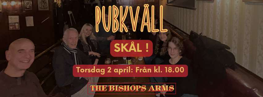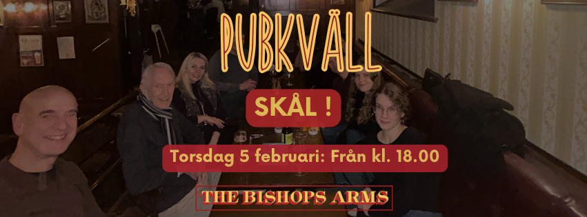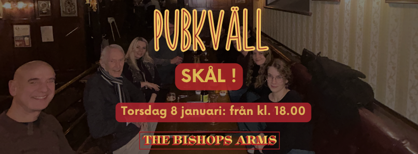 Det är årets första pubkväll 2025! Vi ser fram emot att träffa er där för att fira det nya året tillsammans! Det händer onsdagen den 15 januari från kl. 18 på The Bishops Arms!